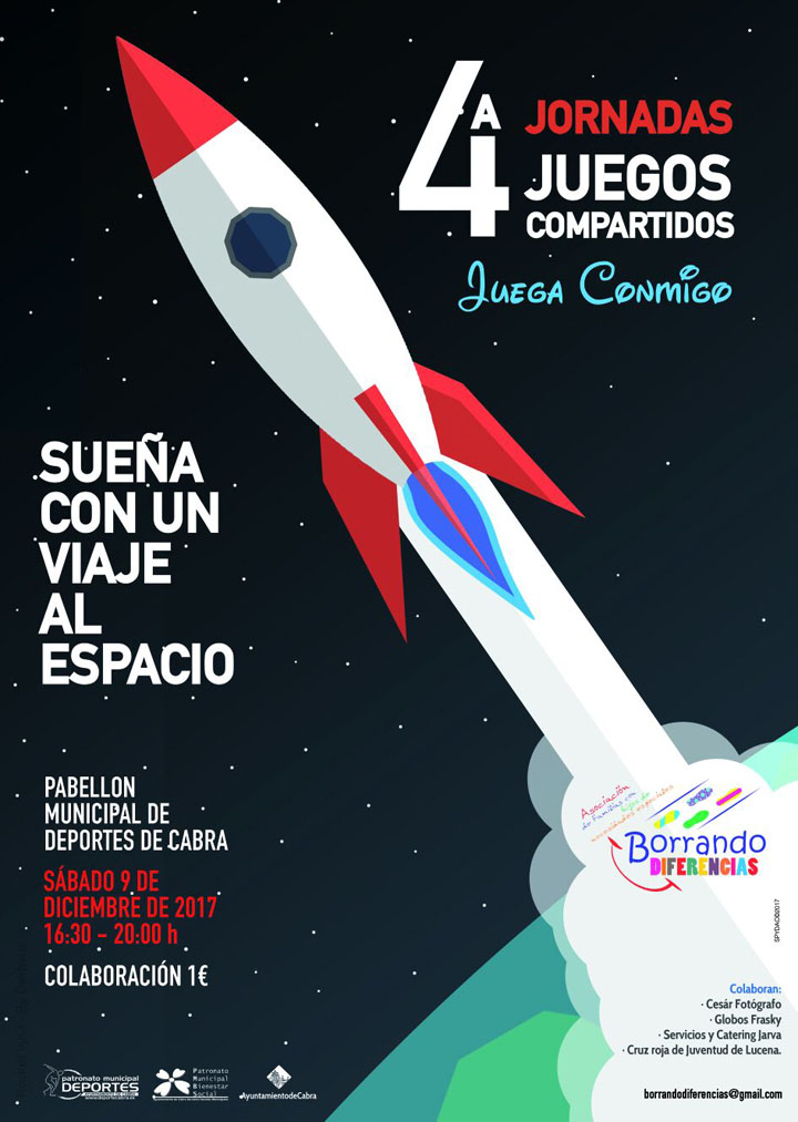 El próximo sábado día 9 de Diciembre la Asociación Borrando Diferencias, celebrará en el Pabellón Municipal de Deportes de nuestra Ciudad, la Cuarta Jornada de Juegos Compartidos - Juega Conmigo-. La actividad se pondrá en marcha a partir de las 16.30 horas y finalizará a las 20.00 H.