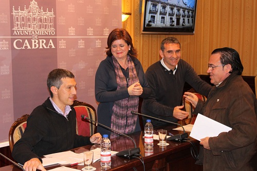 La alcaldesa, Mª Dolores Villatoro, y el concejal de Deportes del Ayuntamiento de Cabra, Jaime López, hacían entrega de estas ayudas.