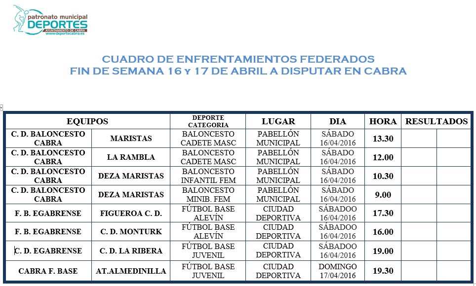 Del mismo modo se disputarán otros tantos encuentros de Fútbol, dos correspondientes a la Escuela de Fútbol Base Egabrense, uno del C. D. Cabra Escuela de Fútbol Base y otro del Club Deportivo Egabrense, este último de categoría Juvenil.