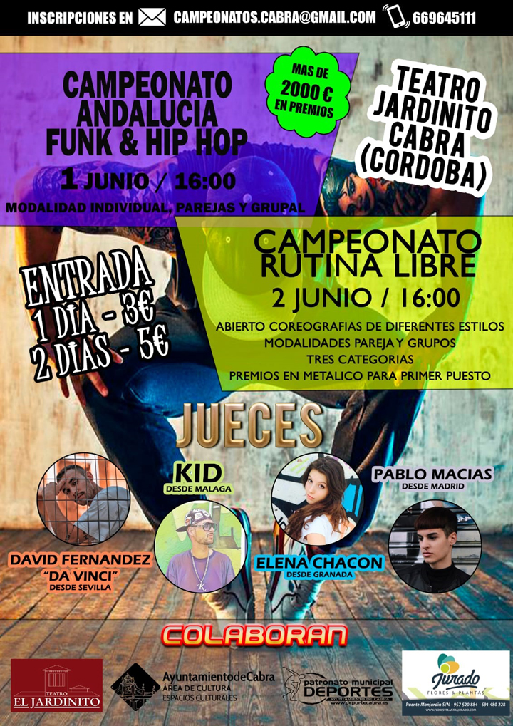 Este próximo fin de semana se celebra en Cabra el Campeonato de Andalucía de Funk y Hip-Hop, organizado por el Club Fit-Fusion, en colaboración con el Patronato Mcpal. de Deportes, el Ayuntamiento de Cabra, además de otras entidades.