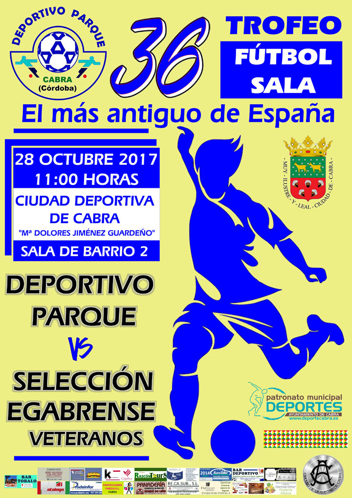 Tal y como reza en el cartel creado para este evento, El Trofeo de Fútbol Sala más antiguo de España se sigue celebrando en nuestra Ciudad y como en todas las ediciones anteriores lleva el sello del Club Deportivo Parque, quien organiza y desarrolla con la colaboración del Patronato Municipal de Deportes de Cabra.