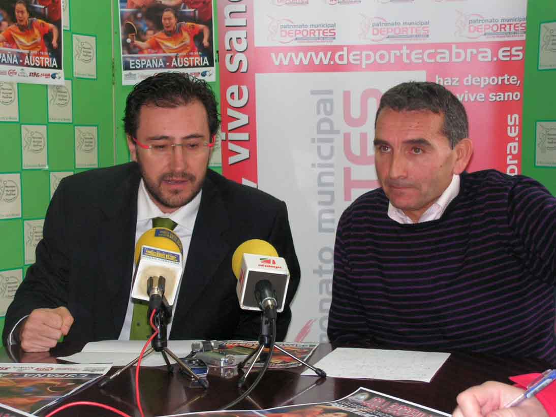 El acto de presentación se llevó a cabo en la Ciudad Deportiva de Cabra y asistieron el Concejal Delegado de Deportes, Jaime López Granados y el Presidente de la Real Federación Española de Tenis de Mesa, Miguel Ángel Machado. El Concejal de Deportes ha tomado la palabra en primer lugar para presentar al Presidente de la R. F. E. Tenis de Mesa y agradecerle su enorme colaboración a la hora de hacer posible en nuestra Ciudad este evento en el que las chicas de la Selección Española, buscan su primera victoria en esta competición. Jaime López ha informado de la posibilidad que habrá el día del partido, de disputar encuentros en los alrededores del Pabellón Municipal entre los aficionados locales, con la intención de crear un ambiente propicio de cara al encuentro entre las Selecciones de España y Austria. Posteriormente el prieguense M. A. Machado, ha agradecido la disposición de Jaime López y del equipo del Patronato Municipal de Deportes para qque se lleve a cabo estos encuentros y sobre todo por dar la posibilidad de que la Federación de Tenis de Mesa pueda llevar a cabo el proyecto de acercar este deporte a las localidades con menos tradición en esta disciplina. En lo referente al encuentro Machado ha puesto de manifierto el enorme nivel que hay en la Premier, que es la Liga de más importancia en Europa y donde las jugadoras nacionales tendrán opción de medalla en los próximos Campeonatos Europeos. Igualmente Miguel Ángel Machado ha animado a los componentes del Club Egabrense de Tenis de Mesa ha continuar en su preparación y que en pocos años se pueda contar con una base sólida de este deporte en Cabra. También ha ofrecido los servicios del Club de Priego de Córdoba que milita en el Campeonato de Europa para fomentar en Cabra el Tenis de Mesa.