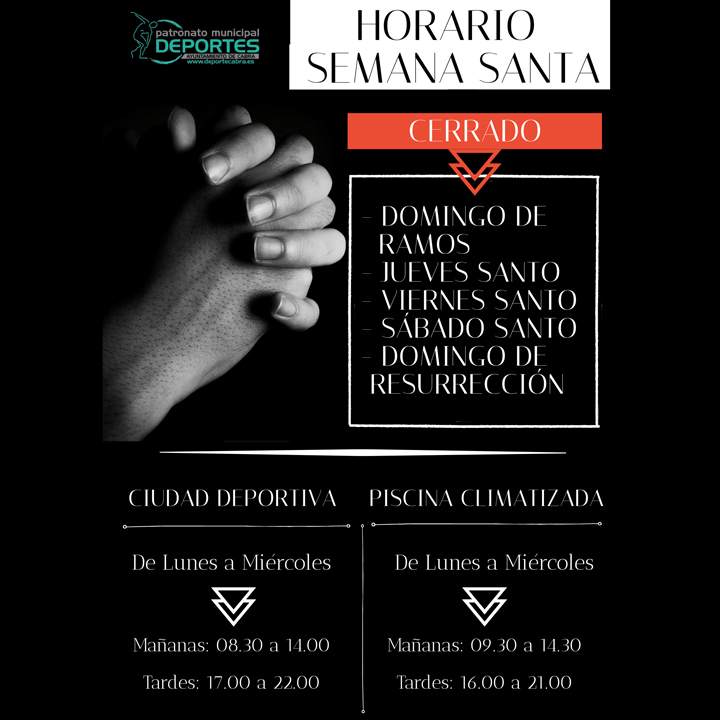 HORARIO CIUDAD DEPORTIVA: DE 8,30 A 14,00 Y DE 17,00 A 22,00 HORAS