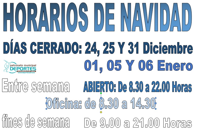 Es por ello que las instalaciones cerrarán solamente los días 24, 25 y 31 de Diciembre y 1, 5 y 6 de Enero. El resto de días las instalaciones abrirán de 8.30 a 20.00 horas de forma ininterrumpida