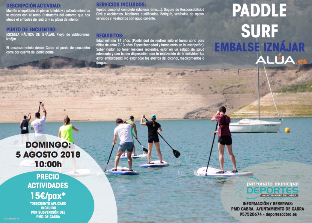 La actividad la realizaremos el próximo domingo a partir de las 10.00 horas en el Embalse de Iznájar, organizada por Alúa en colaboración con el Patronato Municipal de Deportes y con un precio de 15 € por persona.
