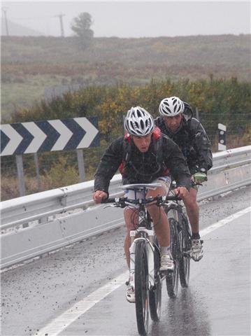 La salida ha sido alrededor de las 7:30 en dirección al Puerto de montaña de Padornelo. La transición a bicicleta en el pueblo del mismo nombre una hora y veinte minutos después, que es lo que emplearon en recorrer los más de once kilómetros a pie . ‘Mucho frío, mucha agua, mucha agua’ nos decía Kiko al detenerse un rato en Verín alrededor de las doce. Trasmiras, Pardieiros, Abavides, Sandiás… se suceden pequeños pueblos en cada Concello. Alrededro de las 13:30 consultamos el contador acumulado del Reto; 1.052’86 €. Hemos superado el escalón de los mil euros. Además, en un solo día la cifra ha subido en más de 100 sms.