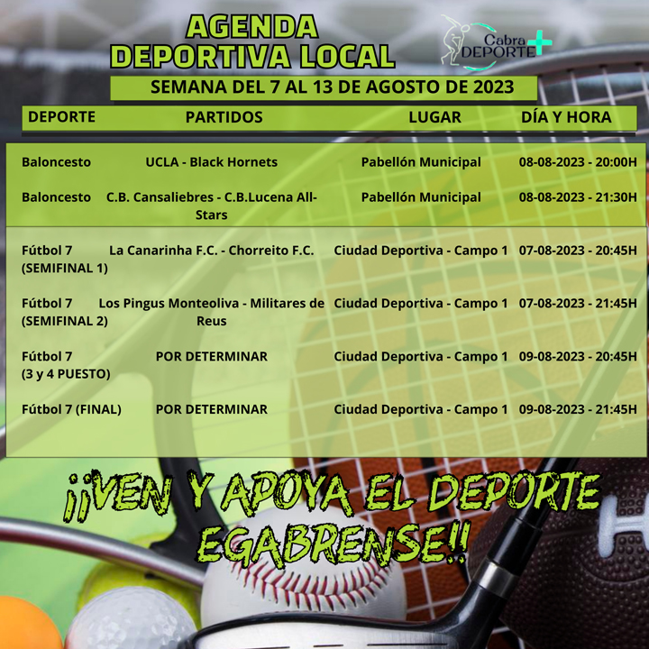 Por su lado, el Fútbol Sala Juvenil y la Liga de Verano de Baloncesto tienen aún varias semanas por delante para seguir haciendo disfrutar a todos los seguidores del deporte local, y que hacen del Pabellón Municipal el sitio de reunión de todos ellos.