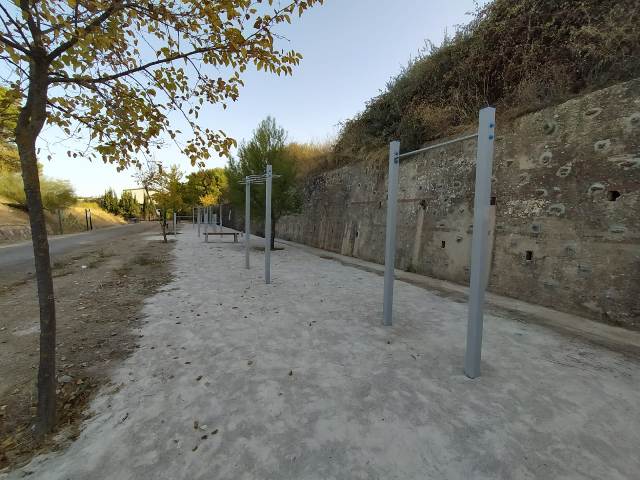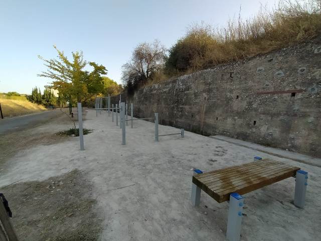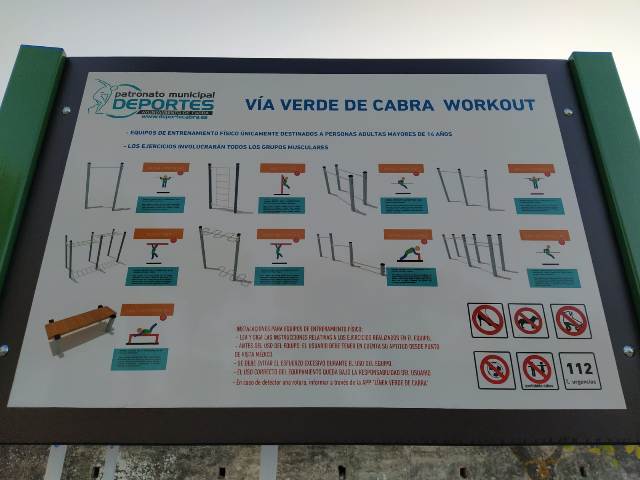 El circuito de calistenia se encuentra situado en la vía verde de la Subbética, en el tramo entre el tren del aceite y el hospital de Cabra.