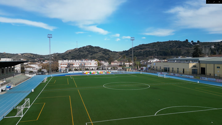 • Campo de fútbol de césped artificial de última generación relleno de fibra de coco y con capa elástica, de unas dimensiones de 100 x 62 metros