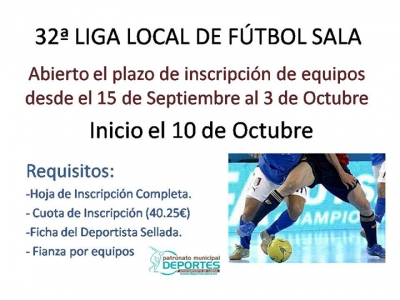Abierto el plazo de inscripción en la Liga local de Fútbol Sala