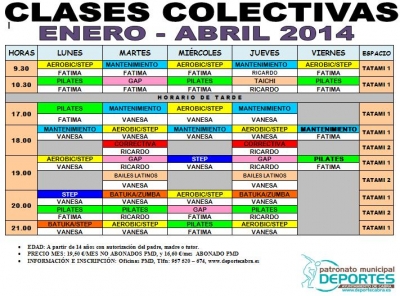 El Programa Clases Colectivas mantiene la estructura de 2013