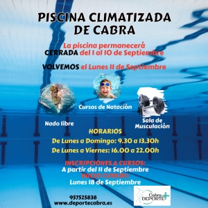 La Piscina Climatizada volverá a abrir sus puertas el día 11 de Septiembre