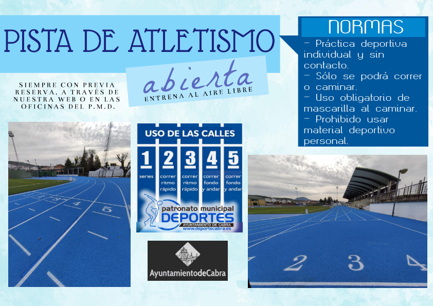 Desde el lunes 8 de Febrero está abierta la nueva Pista de Atletismo de la Ciudad Deportiva Mª Dolores Jiménez de Cabra. Un espacio remodelado completamente, donde los deportistas aficionados al Atletismo podrán realizar pruebas de preparación, entrenamientos o simplemente trotar o caminar por una superficie adaptada a dicha disciplina.