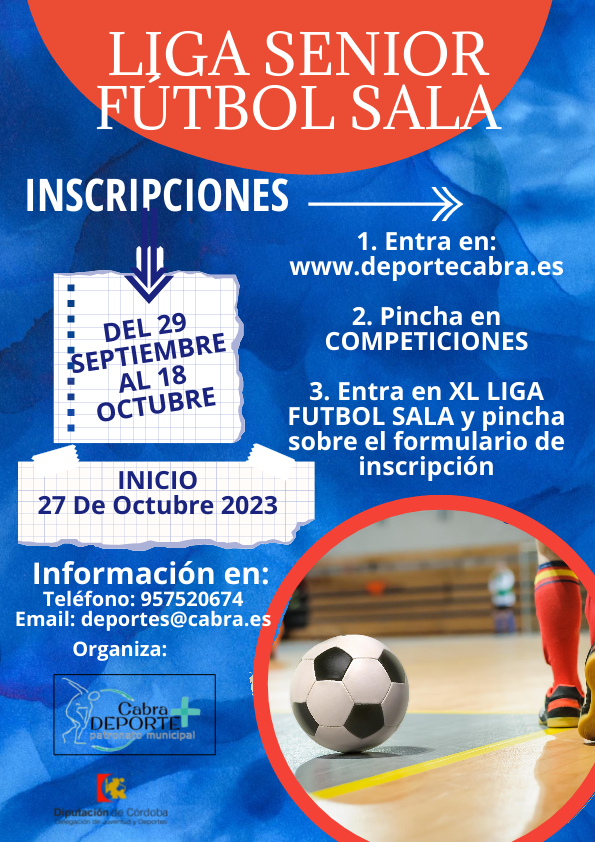 Hasta el 18 de Octubre estará abierta la inscripción en la Liga de Fútbol Sala de categoría absoluta, que organiza y desarrolla el Patronato Municipal de Deportes en las instalaciones de nuestra Ciudad.