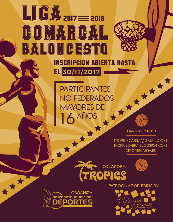 Hasta el próximo 30 de Noviembre permanecerá abierto el plazo de inscripción de equipos en la IV Liga Comarcal de Baloncesto que organiza el Club Egabrense Tropics de Baloncesto, en colaboración con el Patronato Municipal de Deportes de Cabra. Esta competición que tiene un alto carácter lúdico, concentra en cada edición a más equipos tanto de nuestra Ciudad como de localidades vecinas.