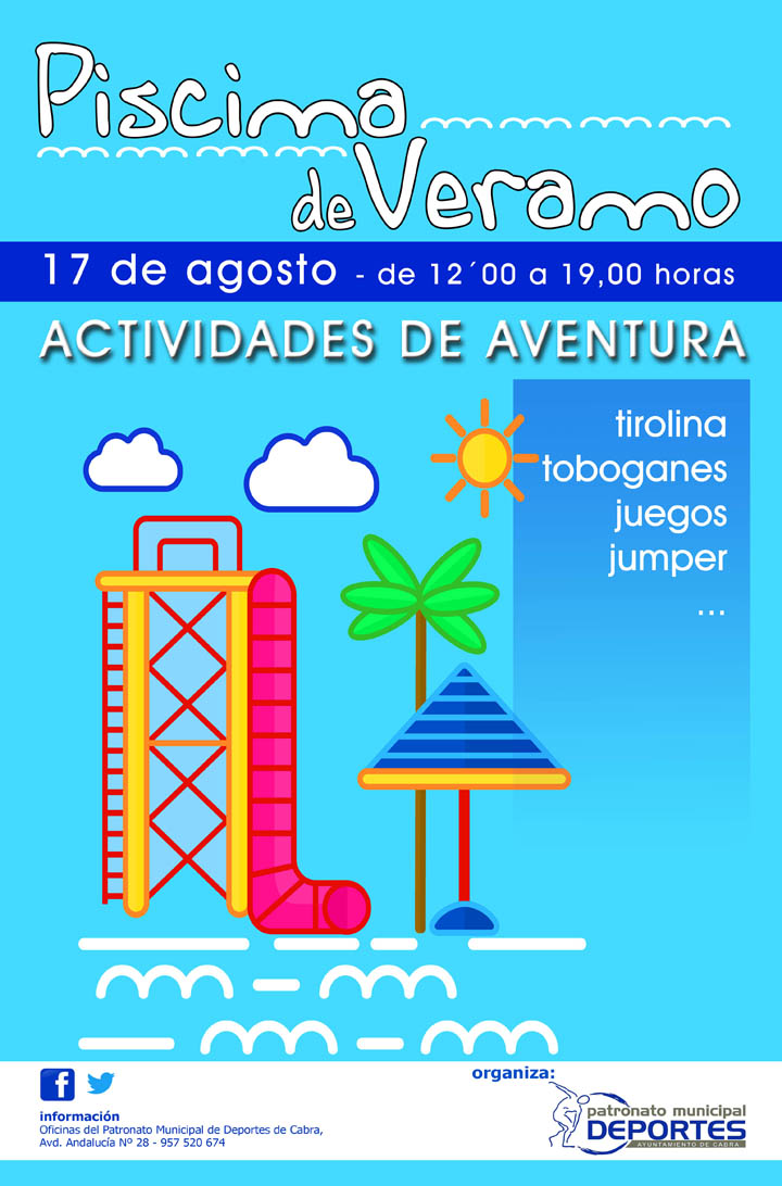 El próximo día 17 de agosto, y continuando con las jornadas de ocio que desarrolla cada verano el Patronato Municipal de Deportes de Cabra, en el Parque Deportivo Heliodoro Martín, tendrá lugar una serie de Actividades de Aventura en el interior de dicho recinto deportivo. Sin duda un aliciente más a este complejo natural que este verano está acogiendo a miles de usuarios.