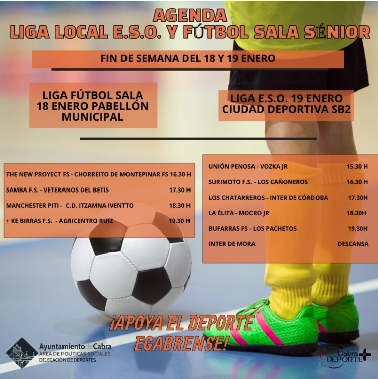 En esta página os dejamos las deferentes opciones que tendrán los aficionados al deporte de formación de nuestra Ciudad para asistir y animar deportivamente a todos los equipos que representarán a Cabra en sus encuentros federados.