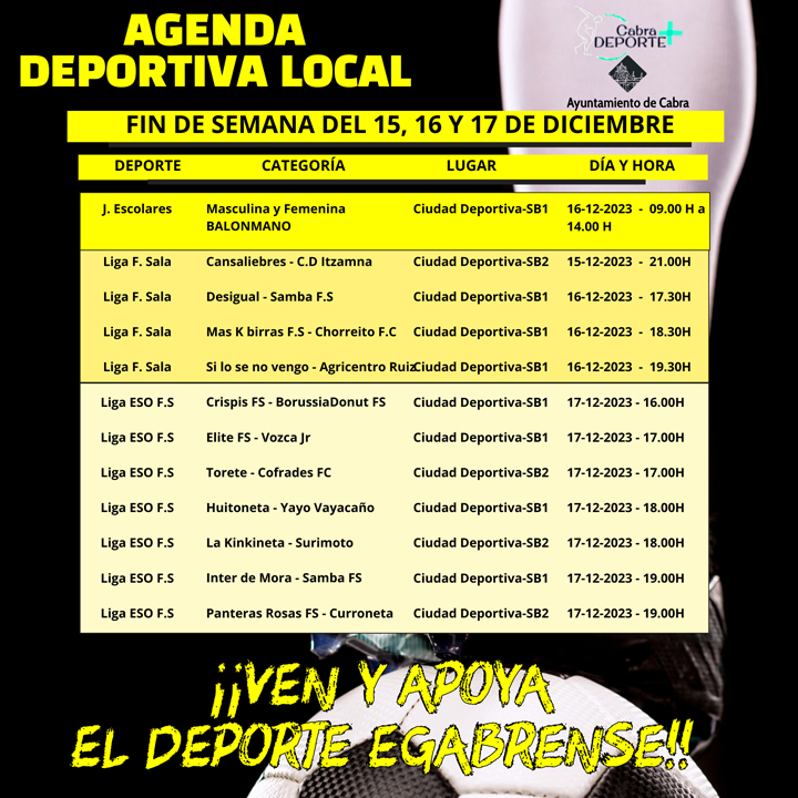 En las dos imágenes que os dejamos a continuación podréis conocer los horarios de cada encuentro, así como el lugar donde se celebran para que disfrutéis del buen ambiente deportivo y navideño.