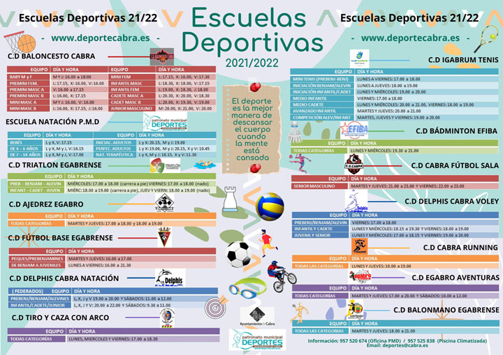 Con la intención de ir regresando a la normalidad en cuanto a la mayoría de disciplinas deportivas se refiere, los Clubes de Cabra junto con el Patronato Municipal de Deportes ponen en marcha la temporada, que ha dado comienzo en estos días y que se presenta con una amplia programación de actividades deportivas.
