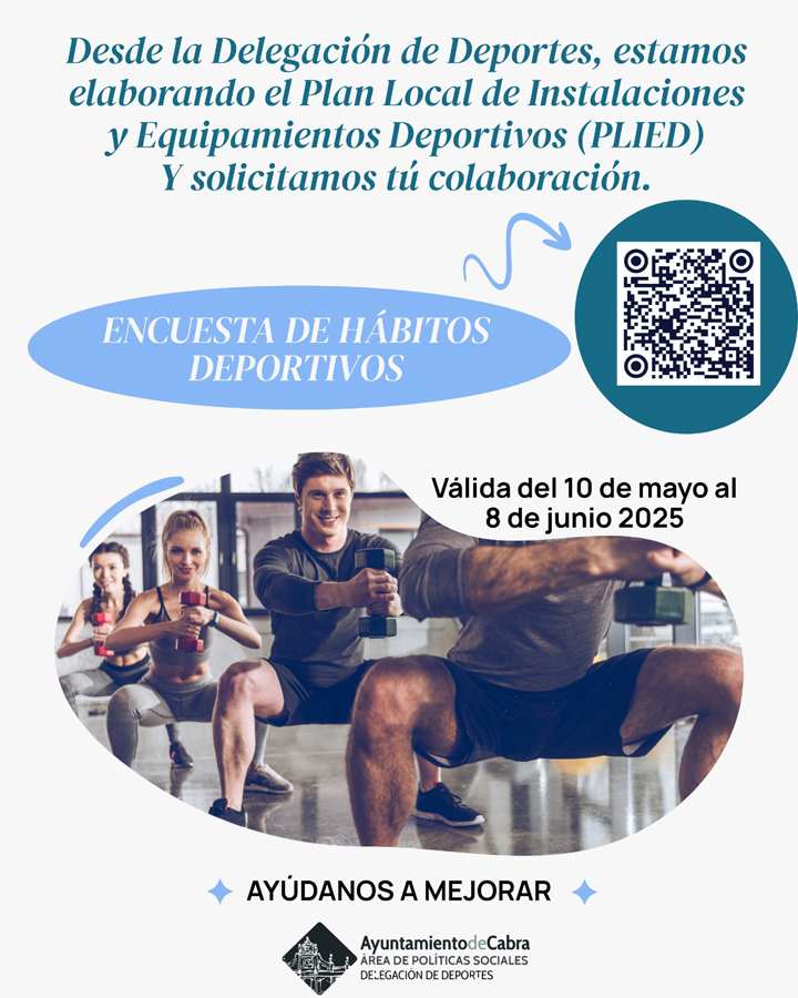 Desde la Delegación de Deportes del Ayuntamiento de Cabra, estamos elaborando el Plan Local de Instalaciones y Equipamientos deportivos, y queremos conocer las necesidades que se deberían cubrir desde vuestro punto de vista que sois quienes utilizáis con frecuencia todas las instalaciones y sus Salas.