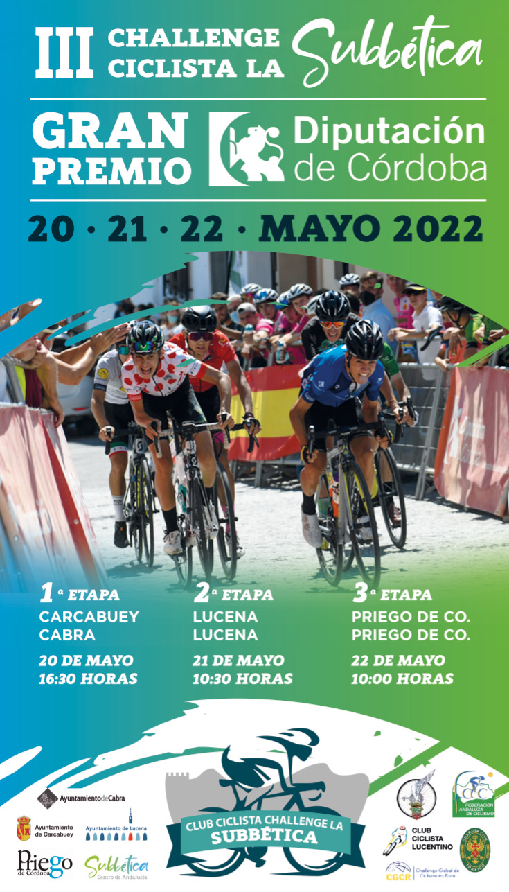 Por otro lado la prueba Ciclista, que tendrá en Cabra el punto de desenlace de la etapa de hoy, que parte desde Carcabuey y tras recorrer varias zonas de la Subbética tendrá el punto final en nuestra Ciudad. La prueba dará comienzo a las 16.30 horas.