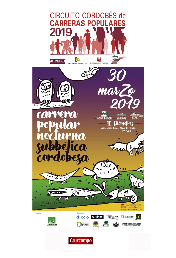 La Mancomunidad de la Subbética organiza la Carrera Popular Nocturna por la Subbética el próximo sábado día 30 de marzo, prueba que está enmarcada dentro del Circuito Cordobés de Carreras Populares.