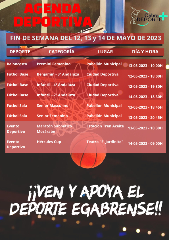 Fin de semana de variedad deportiva en el que podremos acercarnos a disfrutar del deporte de base, con la intensidad y la pasión con la que los más pequeños se adentran en el Mundo del Deporte. Y a la vez podremos presenciar eventos de primer nivel como es el caso de la Copa Hércules y sin olvidarnos del deporte más cercano como será la Travesía Subbético Mozárabe.