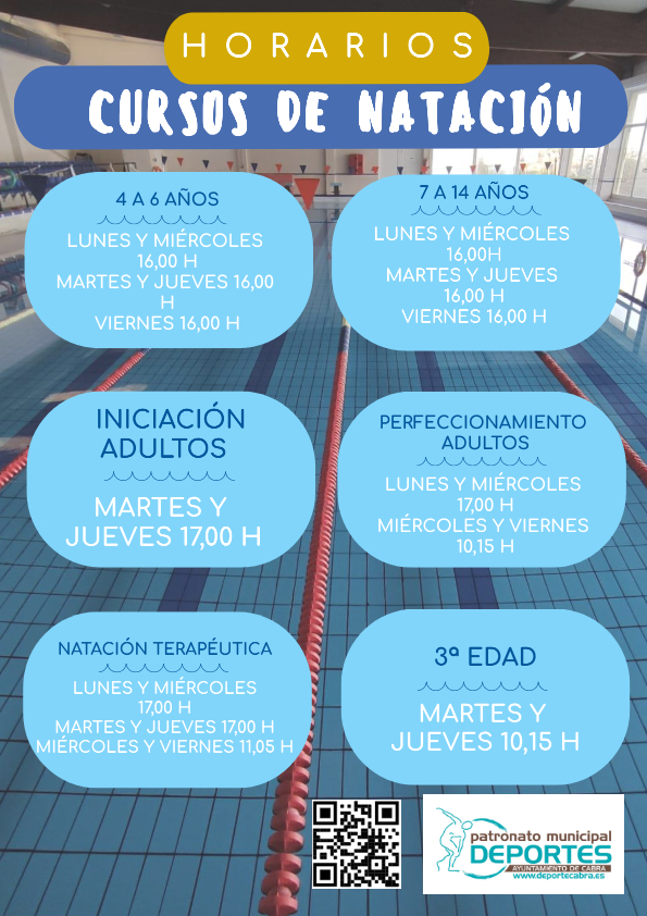 Horarios y cursos de natación.