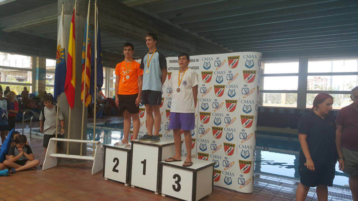 Rafa Tovar Gutiérrez -Rave. Segundo en 200 m superficie, tercero en 50 m apena, tercero en 100 m superficie y cuarto en 50 m superficie.