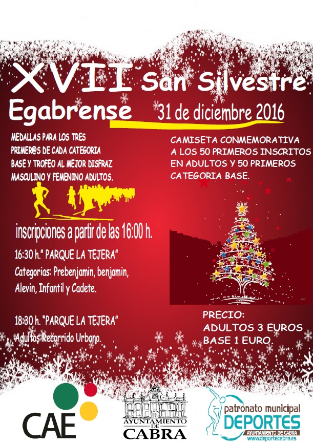 Son ya diecisiete ediciones las que cumple esta tradicional actividad donde se mezcla la diversión, la salud, el deporte y la navidad. El próximo día 31 de diciembre, en las puertas del año nuevo, el Club de Atletismo Egabrense organiza, con la colaboración del Patronato Municipal de Deportes, la tradicional carrera de San Silvestre.