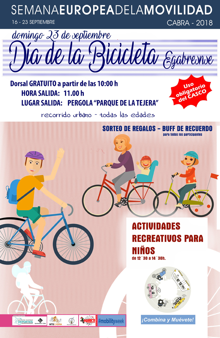 El domingo 23 y con motivo de la Semana Europea de la Movilidad, el Patronato Municipal de Deportes vuelve a organizar el Día de la Bicicleta donde están invitados todos los ciudadanos y visitantes a disfrutar de una jornada diferente, en familia y llena de diversión.