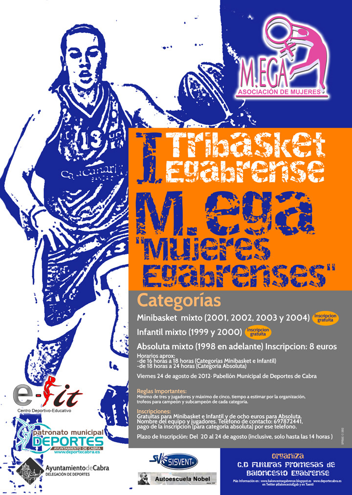 El próximo viernes día 24 de Agosto, se celebrará en el Pabellón Municipal de Deportes de Cabra, el I Tribasket para todas las categorías, que está organizado por el Club Futuras Promesas del Baloncesto en colaboración con el Patronato Municipal de Deportes, la Asociación de Mujeres 'M.ega' y el Gimnasio E-Fit, así como diversas firmas comerciales como Sisvent y Autoescuela Nobel.