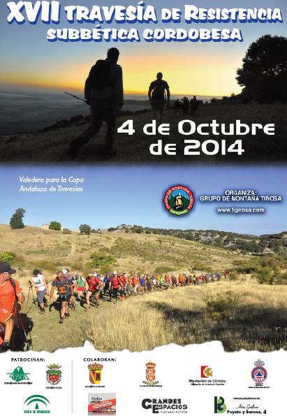 La vigésimo séptima edición de la Travesía de resistencia por la Subbética Cordobesa, volverá a tener a nuestra Ciudad como eje central de organizadores y participantes, que llegados desde todos los puntos de Andalucía participarán en una de las pruebas más bellas de cuantas componen la Copa de Andalucía. La prueba está organizada una temporada más por la Federación Andaluza de Deportes de Montaña y el Grupo de Montaña La Tiñosa, que además en este año cumple los 50 años de su fundación.