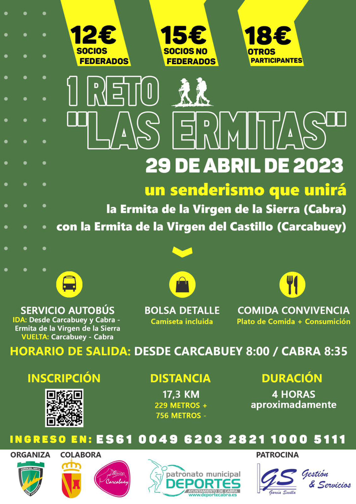 El próximo 29 de Abril se celebrará la primera edición del Reto de unir a las Ermitas de las localidades de Cabra y Carcabuey. Este objetivo es el que se ha marcado el Club Deportivo Nervo, organizador de la prueba en colaboración con el Ayuntamiento de Carcabuey, el Ayuntamiento de Cabra y el Patronato Municipal de Deportes.