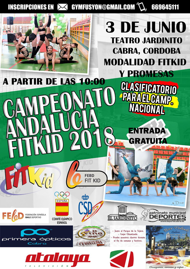 Un año más nuestra Ciudad acogerá a l@s participantes del Campeonato de Andalucía de Fit-Kid, que organiza el Club egabrense Gym Fusion, en colaboración con el Patronato Municipal de Deportes, así como diversas entidades privadas.