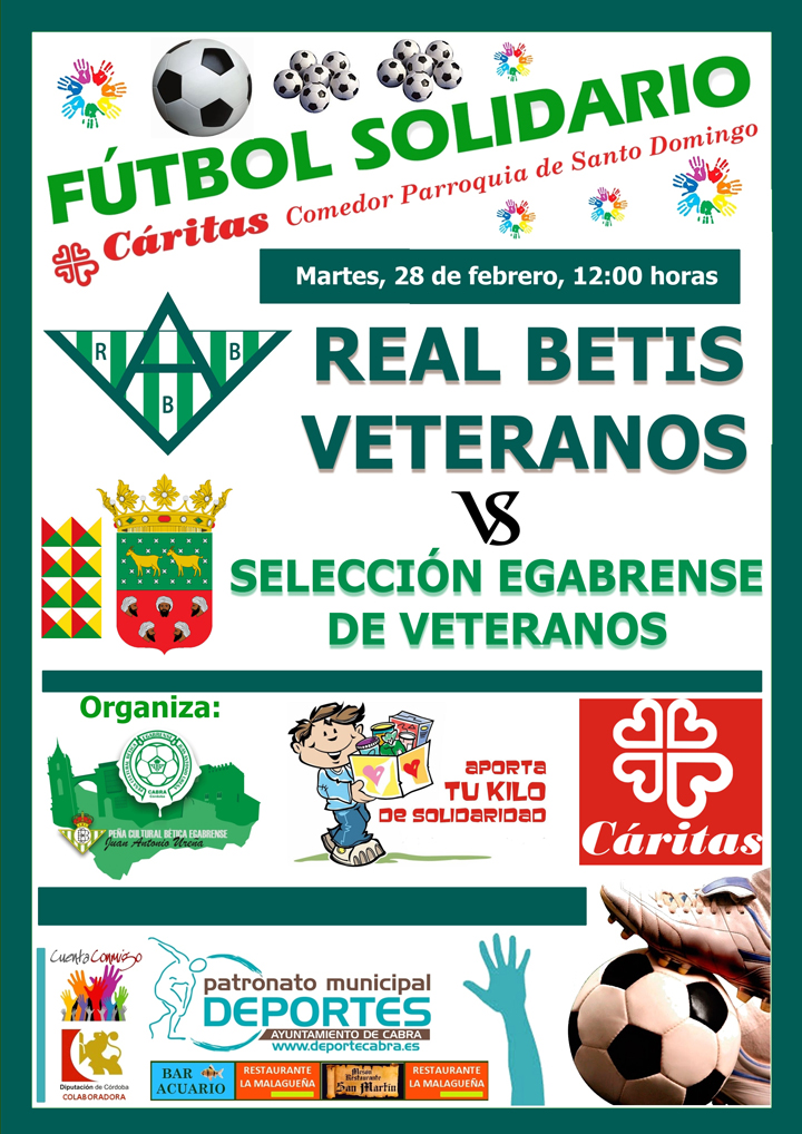 El próximo día 28 la Ciudad Deportiva acogerá un interesante encuentro deportivo de carácter amistoso y con fin solidario, en el que se enfrentarán los equipos de veteranos del Real Betis Balompie y el Clud Deportivo Egabrense. La actividad está organizada por la Peña Bética Egabrense en colaboración con el Patronato Municipal de Deportes
