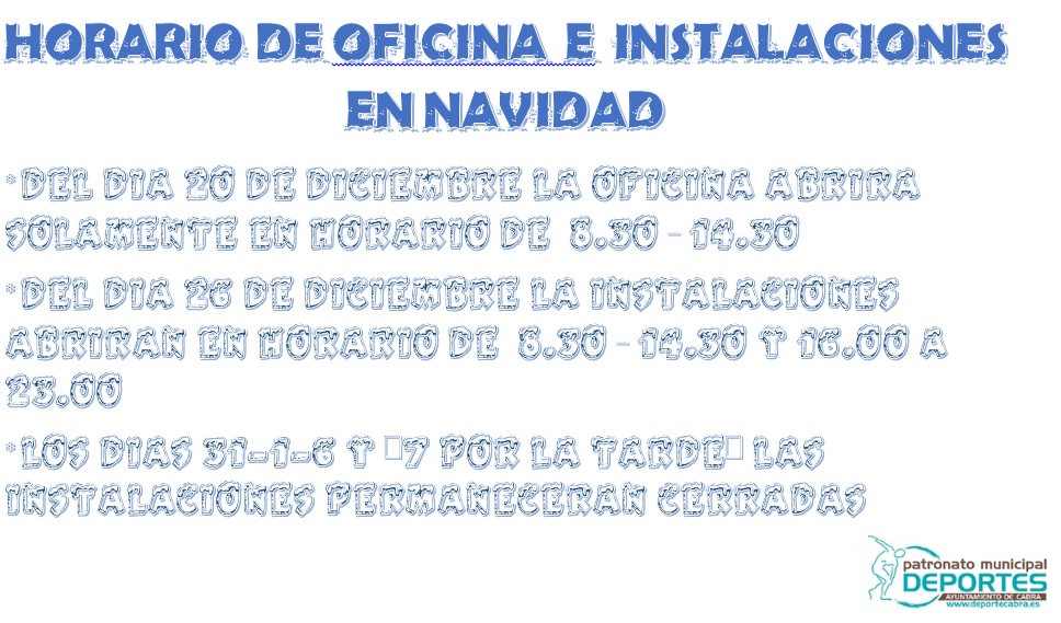 Horarios para la Oficina y las Instalaciones hasta el 7 de Enero