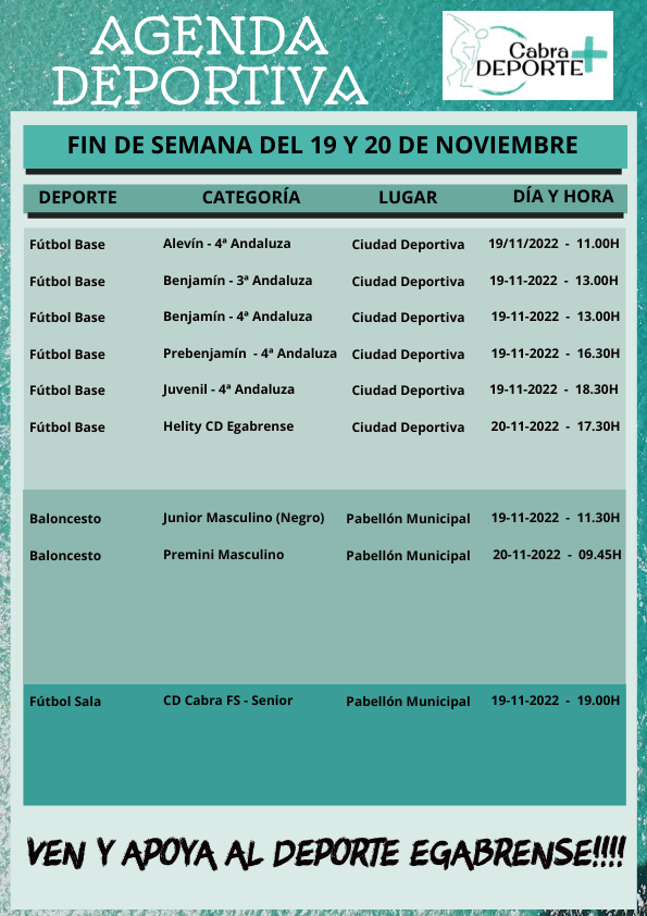 Para este fin de semana tenemos en las instalaciones deportivas un buen repertorio de encuentros en categorías de formación. Si bien en lo que corresponde a las disciplinas está concentrado en Fútbol y Baloncesto, ambas, nos ofrecerán una variedad de partidos muy interesantes y con un abanico de horarios bastante amplio.