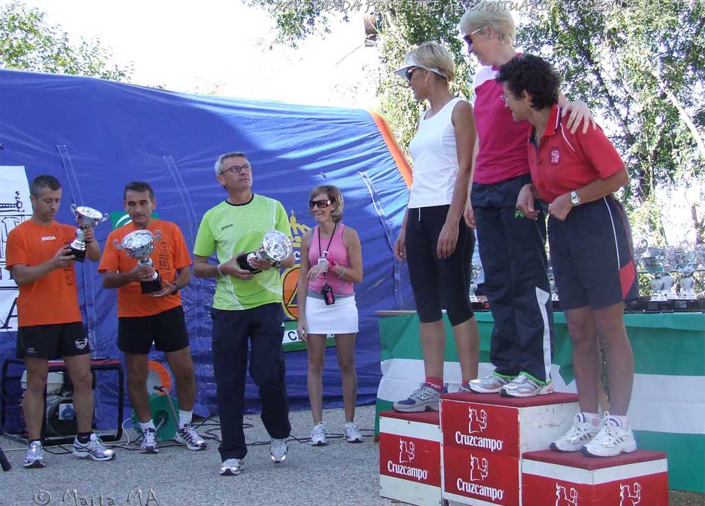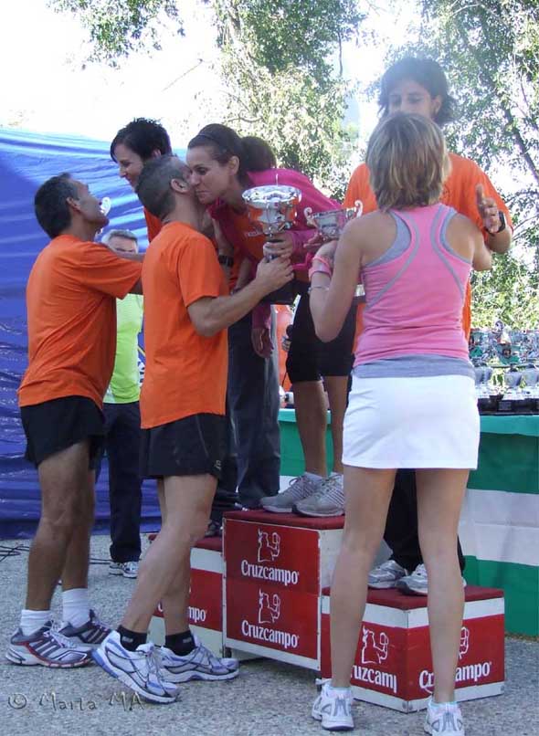 La línea de meta también contaba con gran espectación de aficionados, familiares y seguidores, que sólo tuvieron que esperar algo más de una hora desde el pistoletazo de salida para ver llegar al primero de los participantes, Rafael Bermúdez que con un tiempo de 1h.03' 38'' se proclamaba como vencedor absoluto. Sólo 14 minutos después entraba la primera chica, quien sino, nuestra egabrense Loli Jiménez Guardeño que con un tiempo de 1h. 17' 02'' se hacía con el primer puesto.