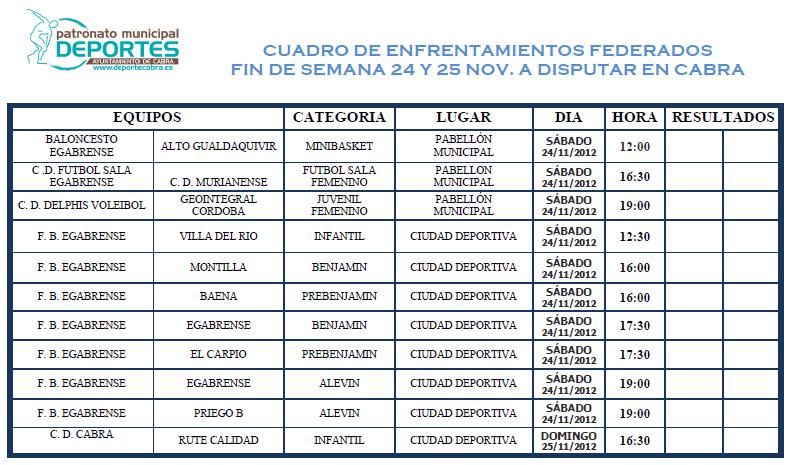 Intenso fin de semana el que se nos presenta en las Instalaciones Deportivas de Cabra. Tanto Ciudad Deportiva como Pabellón Municipal, acogerán las diversas disciplinas deportivas que compiten a nivel federativo. Como novedad hay que mencionar la puesta en marcha del equipo femenino de Voleibol que dentro del Club Delphis salta a escena como el primero de esta disciplina que participa a nivel provincial.