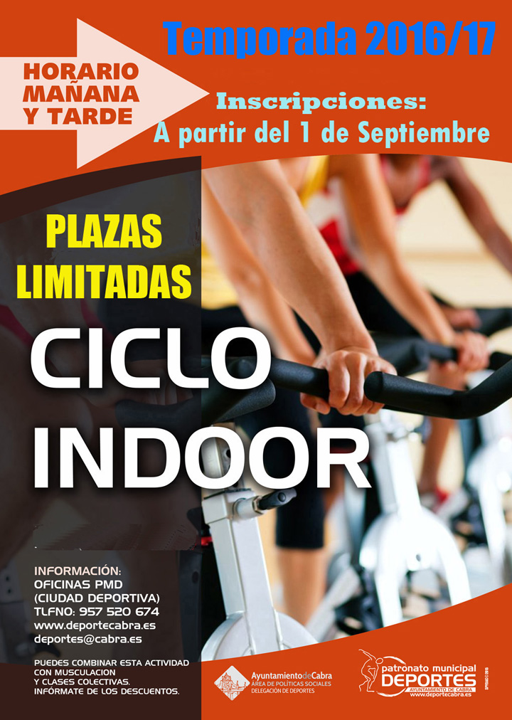 A partir del 1 de Septiembre comienzan las inscripciones en la actividad del Ciclo Indoor que se impartirá para la próxima temporada en la Ciudad Deportiva de Cabra. Un programa que va a presentar un horario muy similar al de la pasada campaña, con el que los deportistas se sintieron muy cómodos, reflejándolo en la masiva asistencia a todos los módulos que se programaron.