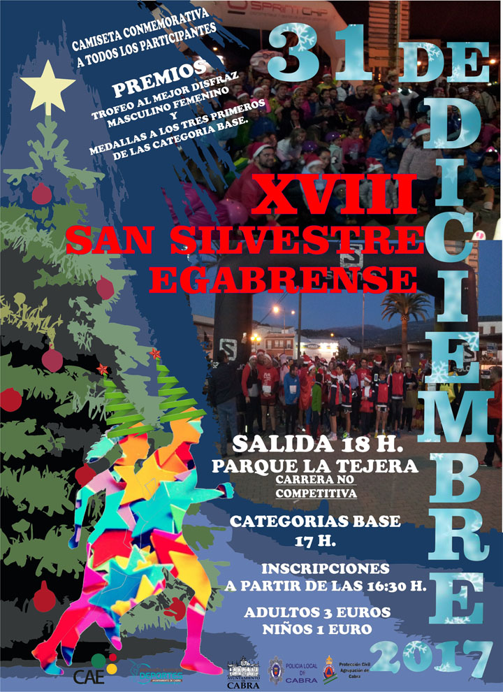 El próximo 31 de Diciembre pondremos punto y final a un 2017, que nos ha traído grandes noticias deportivas, pero no lo cerraremos sin antes participar y disfrutar de la última prueba deportiva del año, que como viene siendo tradicional se trata de la San Silvestre Egabrense, que cumple ya su décimo octava edición.