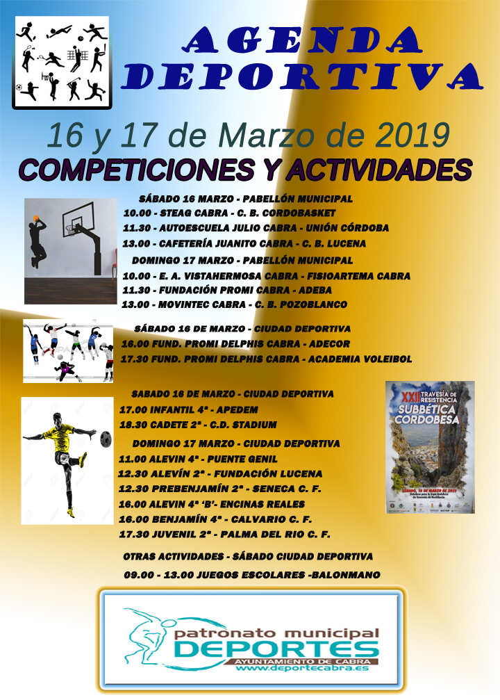 Las competiciones de formación en las disciplinas de Fútbol, Voleibol y Baloncesto nos ofrecerán en sesión de sábado y domingo, diversos encuentros deportivos que se celebrarán en la Ciudad Deportiva y el recientemente remodelado Pabellón Municipal de Deportes.