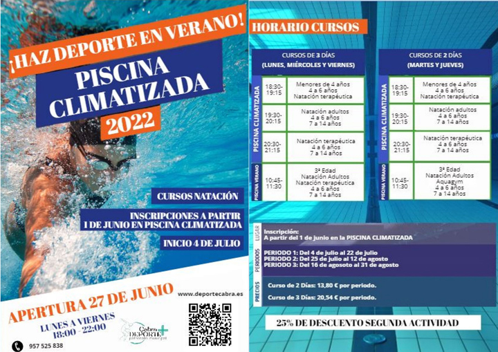 En esta página podrá consultar toda la información acerca de Cursos de Natación, fechas, períodos de inscripción, horarios y precio de los Abonos.