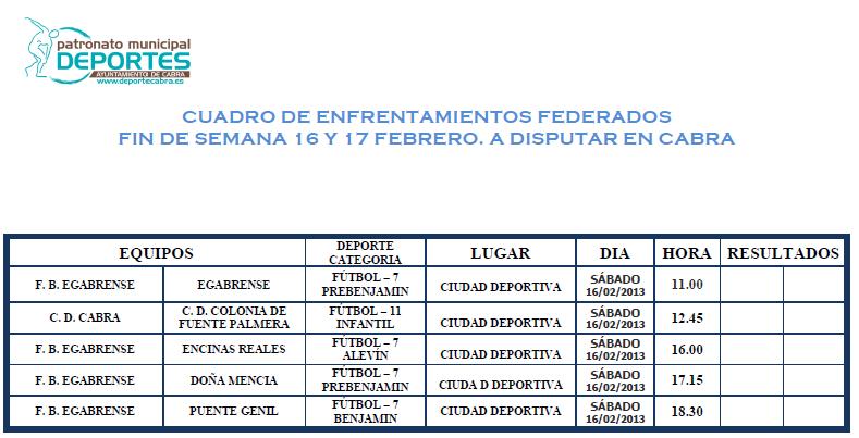 Sólo el sábado se celebrarán partidos de carácter federado, en este próximo fin de semana 16 y 17 de Febrero