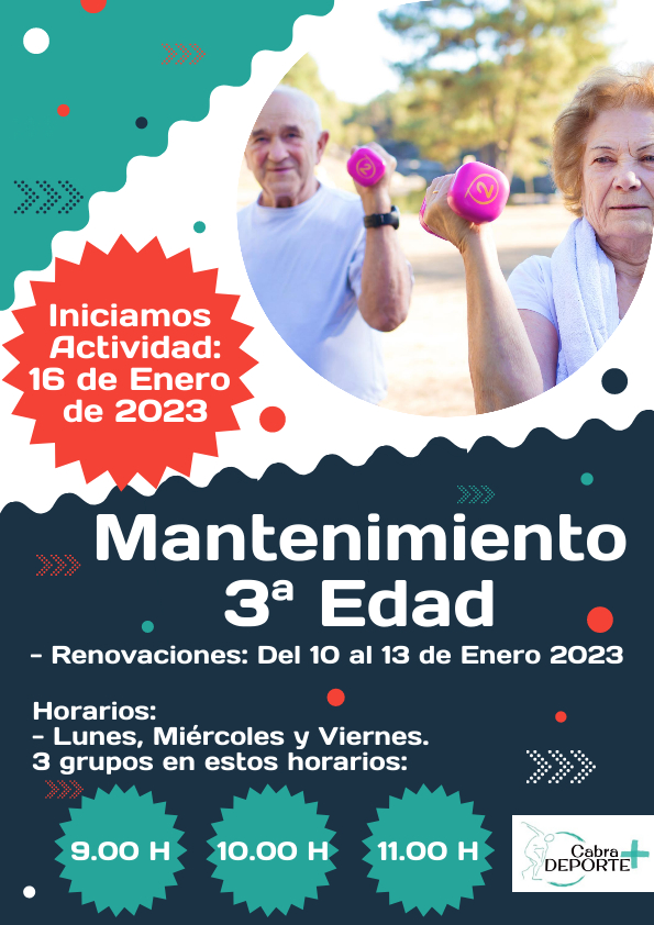 A partir del próximo lunes regresa la Gimnasia de Mantenimiento para la Tercera Edad, una vez que durante la segunda semana de enero se han estado realizando las renovaciones en las plazas de los diferentes grupos. Será el día 16 cuando se puedan inscribir, aquellos mayores que deseen retomar la actividad física.