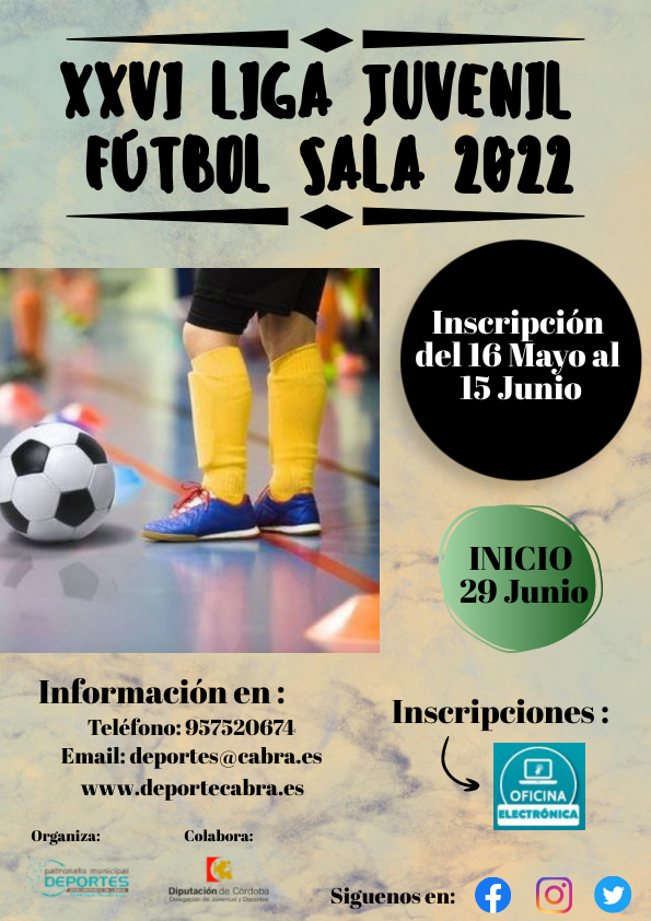 Las dos primeras competiciones en abrir su plazo de inscripción será la Liga de Baloncesto y la Liga Juvenil de Fútbol Sala, realizándose todo el trámite a través de la Oficina Electrónica a partir del día 16 de Mayo.