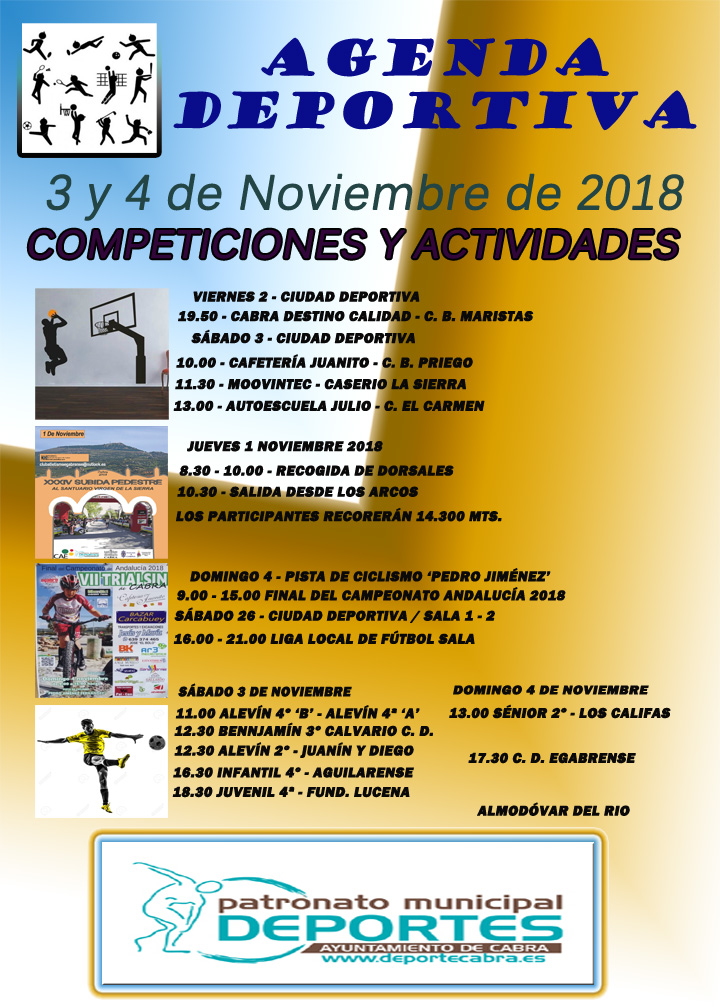 En las Instalaciones Municipales contaremos este próximo fin de semana con un gran número de encuentros federados, así como otro tipo de competiciones que de forma puntual aparecen en el calendario local.
