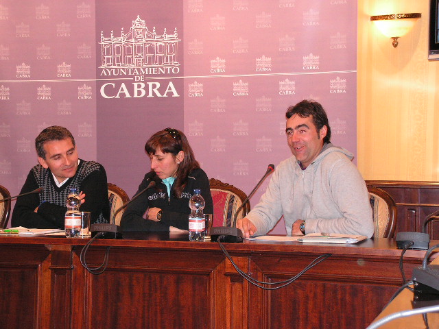 En la mañana del jueves día 19 de Febrero, se celebró la Rueda de Prensa, en la que se daban cita el Concejal Delegado de Deportes de Cabra, Jaime López Granados, junto con los tres deportistas Egabrense que se trasladan a Argelia, donde van a realizar una prueba deportiva, además de colaborar en diversos proyectos de ayuda en torno al Deporte y la Actividad Física. Tras la presentación realizada por el Concejal, tomó la palabra Pablo Luque, quien además de participar en la Marathón de 42 Km, realizará posteriormente tareas de formación para Monitores Deportivos en dicha zona. A su vez Loli Jiménez, que participará en la Media Marathón, y que el pasado año, quedó subcampeona en esta misma disciplina, explicó la motivación especial que existe al participar en una prueba en estos lugares, donde en poco tiempo ha incrementado notablemente la participación femenina. De hecho la atleta egabrense, estará encargada del proyecto de fomento del deporte entre el colectivo femenino. Junto a ellos, Fernando Osuna, que es su primera participación en la actividad y que va con la intención de colaborar junto a los dos egabrenses. Además de ellos, una expedición de aproximadamente una treintena de cordobeses, que estarán durante algo más de una semana conviviendo en jaimas con familias residentes en la zona. Sin duda una labor que se afianza entre los egabrenses, como así apuntó también el Presidente de la Asociación Egabrense de ayuda al Sáhara, Manuel Navas, que describió mediante una lectura, las vivencias obtenidas de sus desplazamientos a la zona.
