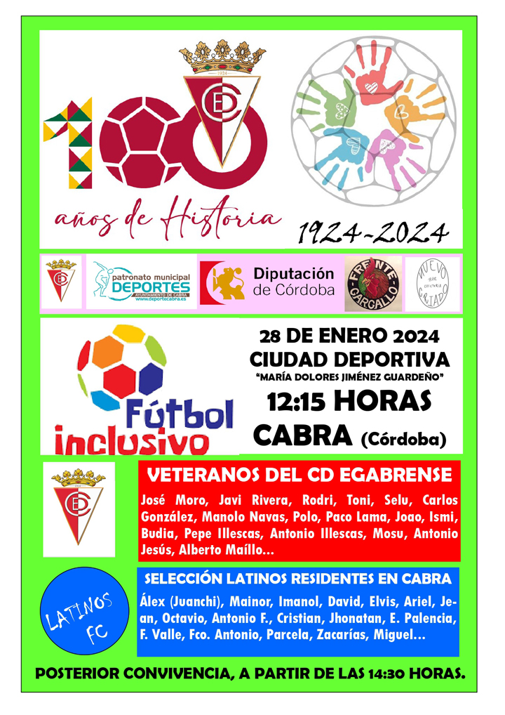 El Club Deportivo Egabrense realizará varios actos durante esta temporada, dentro de la conmemoración de los 100 años de Historia que cumple. Uno de ellos será el encuentro de fútbol, que se disputará el próximo domingo en la Ciudad Deportiva - Mª Dolores Jiménez - de Cabra y donde la principal característica está en los valores que engloba el mundo del Deporte.